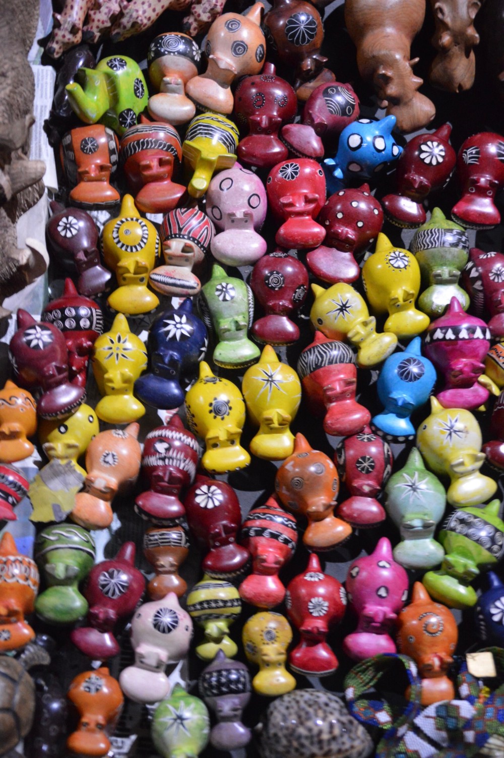 Before we returned to the hotel, we wandered through and open air market along the street. Every stall sold basically he same stuff, but it’s hard to complain when that stuff is all locally made art. The sellers are aggressive in their enthusiasm to make a deal. We did not make it out unscathed. Mom bought a few small flat things that would fit in her suit case and I bought to very colorful tiny figurines, one of an elephant and the other hippo (they are adding to a growing collection I have back in the states, gifts from friends and family in their travels to to Zambia and India). They will love with my in Lesotho for the next year and a half before joining their brethren.
