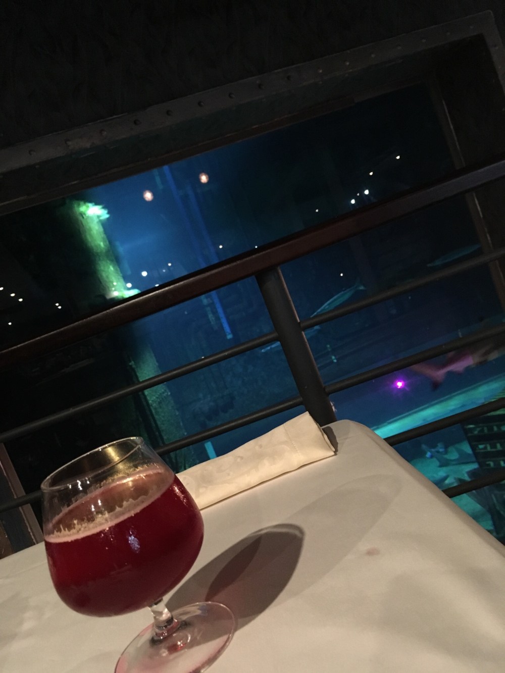 Now, I forgot to mention that this day was also Mama’s birthday! So as a parting gesture our awesome guide made a reservation at restaurant near our hotel. And this is going to take some explanation. The place we were staying (the same one as the first night, just a different room) was about a ten minute walk from Ushaka Marine World. And around the outside of Marine World is a horseshoe of shops and restaurants. And then, at the end of this mini mall, where it runs into the beach, is a ship. A big old ship brought onto land as part of the Marine World landscape. And it has a restaurant inside it called the Cargo Hold. This is where we went for dinner. Why would a restaurant in the basement be of interest when we could be sitting staring at the ocean at a different restaurant? Because the Cargo Hold butts up against the Marine World shark tank. We spent our evening sitting drinking cocktails and eating fancy food right next to the glass as sharks swam by. It was awesome!