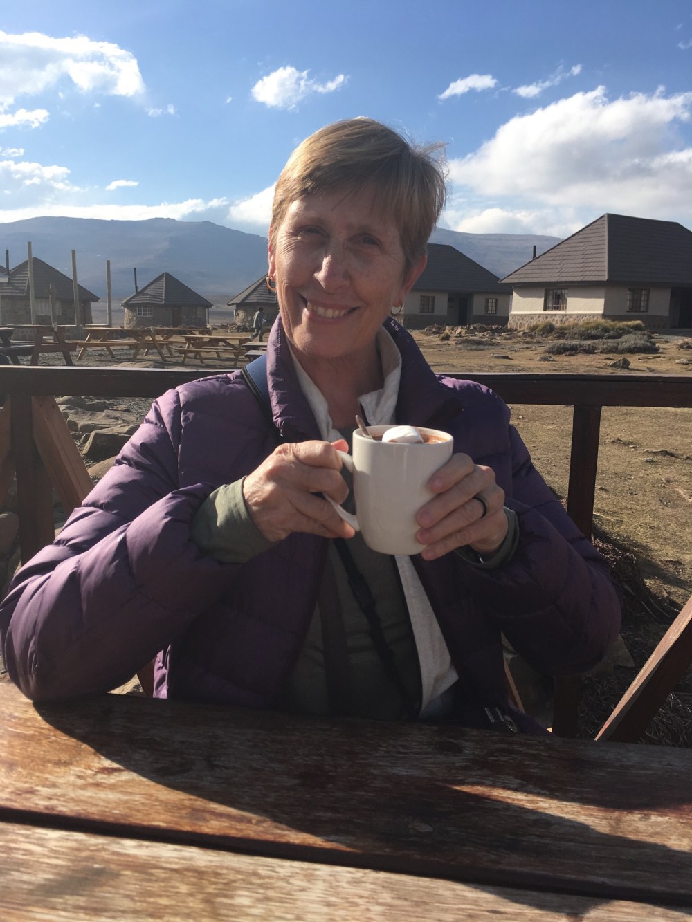 We sat outside which was good because it was very crowded inside but bad because it was 1 degree Celsius outside (about 34 degrees for you folks in Fahrenheit). Good thing Mama and I chose our drinks to actually be spiked hot chocolate. I missed the season’s first snow while I was playing at the beach and there were a few patches still in the ground as we drove all the way to Thaba-Tseka from Mokhotlong, another not great road (more like mine and not Sani though). We arrived after dark but at least we knew the last hour of the road. And that was it.